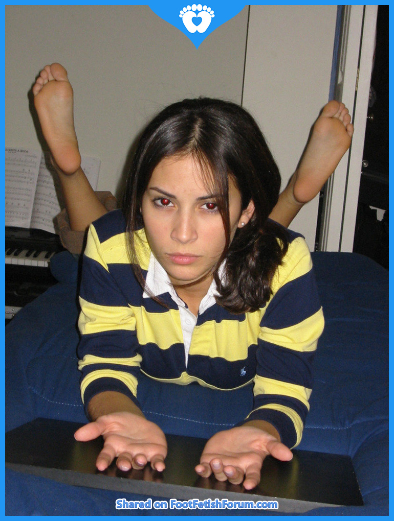 Title: Beautiful brunette feet and soles on pose