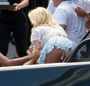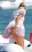 Victoria Silvstedt White Pantie Upskirt Exiting a Boat