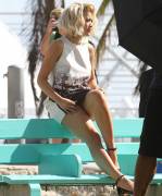 Rita Ora Upskirt on a Park Bench