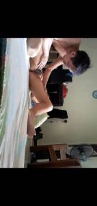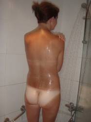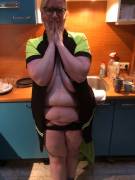 Old wife shows off her big tits and hairy pussy
