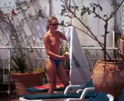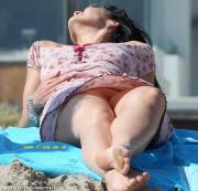 Romanian milf Daniela Gramatovici having accidental pussy slip on the beach