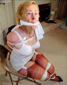 Slut Granny Bound and Gagged Helpless in Strict Bondage