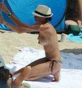 Suki Waterhouse Braless in See Through White Tank Top