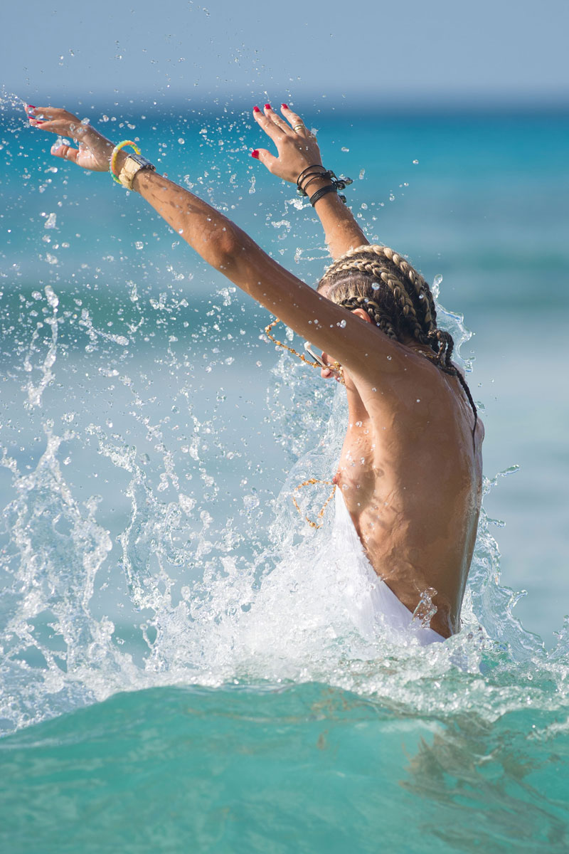 Title: Lady Victoria Hervey Loses Her Bikini Top in the Surf