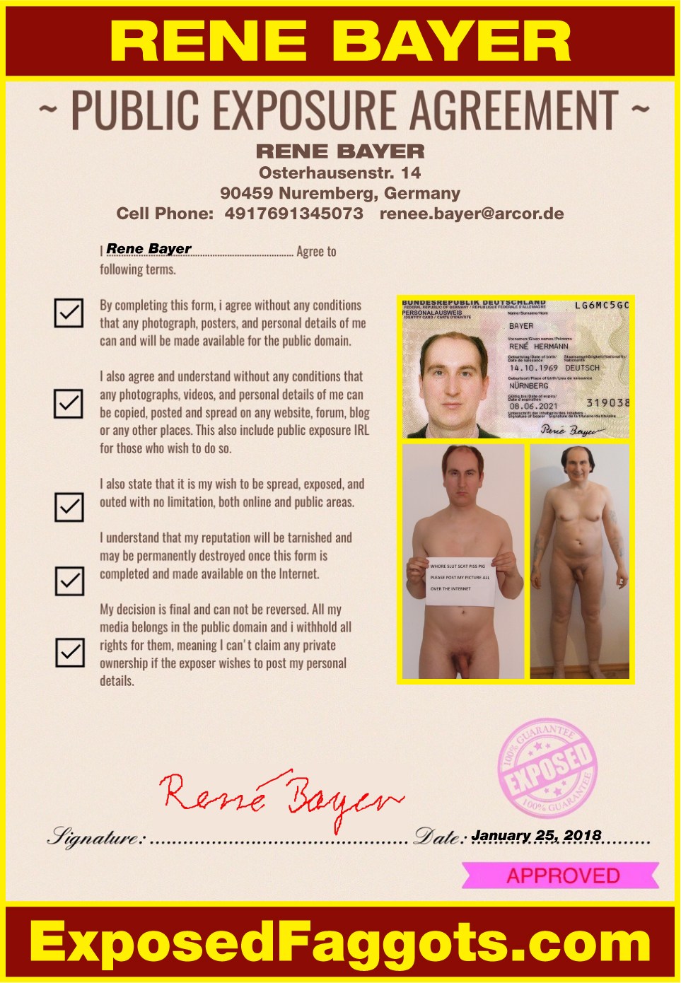 Title: no way to go back, to control or to stop it Here is the Public Exposure Agreement filled out and sig