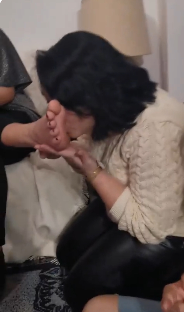 Title: Total humiliation (on her knees kissing rivals feet)