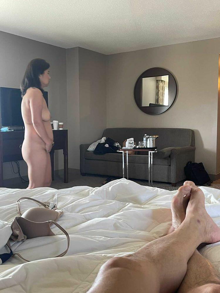 Title: Back af the hotel she shows off everything
