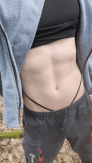 Title: skinny guy is posing in a thong in the forest