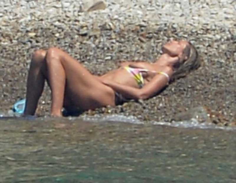 Title: Heidi Klum Topless Sunbathing on an Island